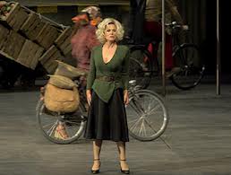 Joel has a record of unpopular new productions and this one was particularly decried; there was derisive noise from all corners of the auditorium opening night. The respected theater director Yves Beaunesne gave us a one set staging looking like an abandoned factory or aircraft hangar. He updates the period to post-Franco Spain and has obvious references to Pedro Almodóvar’s films but the focus of the story was lost amid the drag queens and constantly circulating bicycles. The human drama at the heart of this masterpiece was lost among the excesses, often merely decorative.