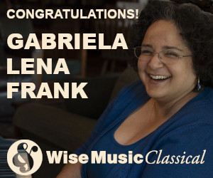 A meeting, at age 19, with the late Fran Richard of ASCAP turned out to be crucial. “We pen-palled for 10 years, and she threatened to break my arm if I didn’t apply for the ASCAP Young Composer award,” Frank reports. Her string quartet Leyendas: An Andean Walkabout (2001) won an award, and led Susan Feder, VP of Schirmer, to offer her a contract. Soon after, Frank was stricken with Graves disease, and found herself barely able to work for the next eight years; through that whole period, her publisher stuck by her side.