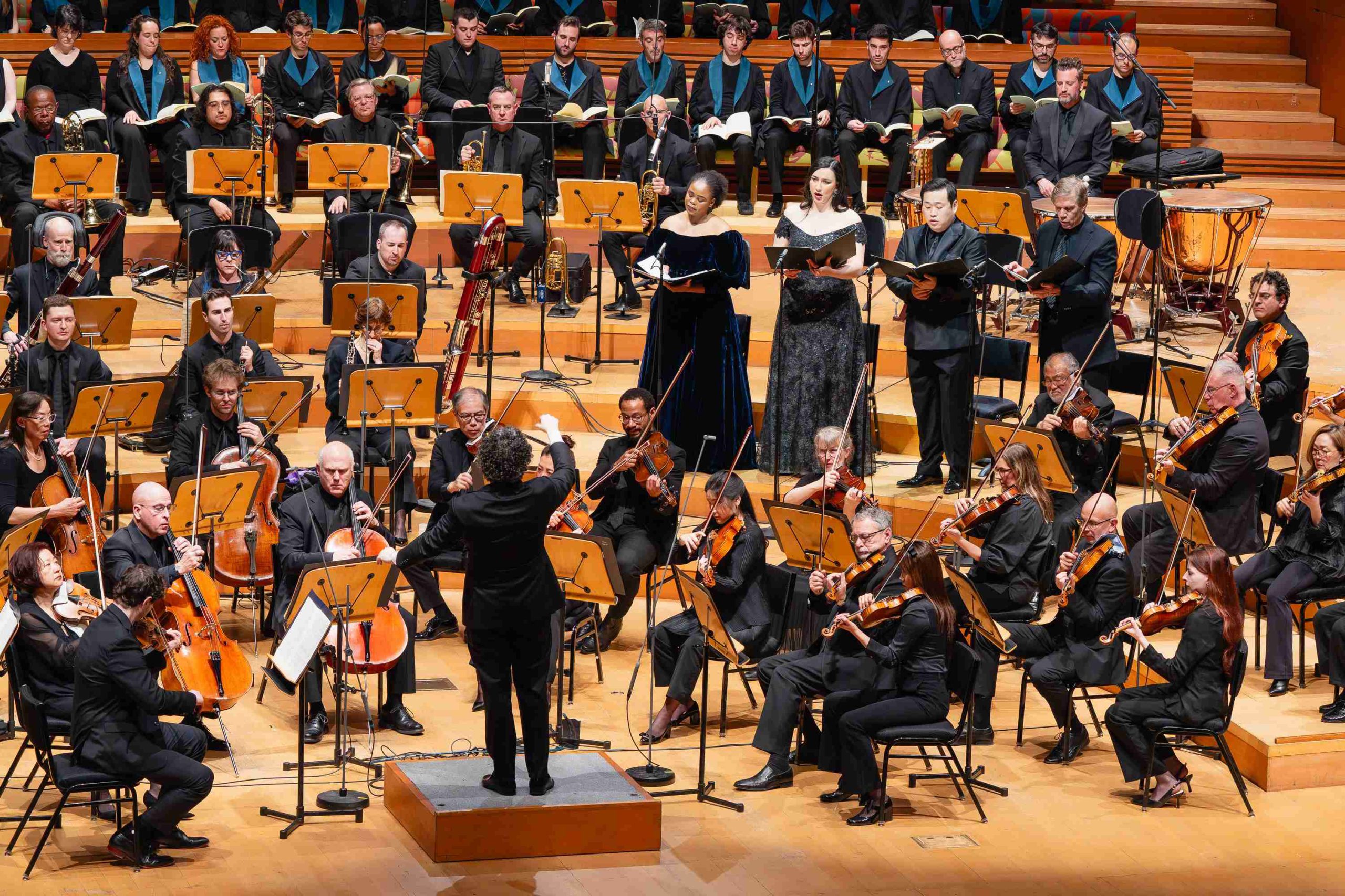 Dudamel’s reading emphasized sweep and immediacy. His two Barcelona-based choruses produced a blended, cohesive sonority that favored massed sound over rhetorical dialogue—an approach shared by Mäkelä. Soloists Pretty Yende, Sarah Saturnino, SeokJong Baek, and Rod Gilfry functioned largely as a quartet within the sonic fabric rather than as sharply profiled protagonists. Perhaps because of their placement mid-orchestra behind the violas and in front of the timpani, they had less presence and force than their French counterparts who sang from the front of the stage. But the overall impression was physically and emotionally splendid.