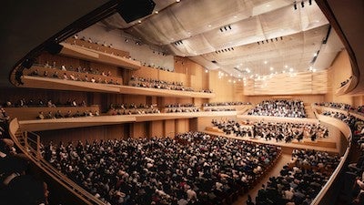 Interlochen students will perform at David Geffen Hall just months after it reopens to the public following a major renovation. Designed by Diamond Schmitt Architects in collaboration with acoustician Paul Scarbrough of Akustiks and theater designer Joshua Dachs of Fisher Dachs Associates, the hall’s design ensures superior acoustics. The renovation enhances the entire concert-going experience, with spacious new public spaces that encourage more interaction among visitors, as well as a media streaming wall.