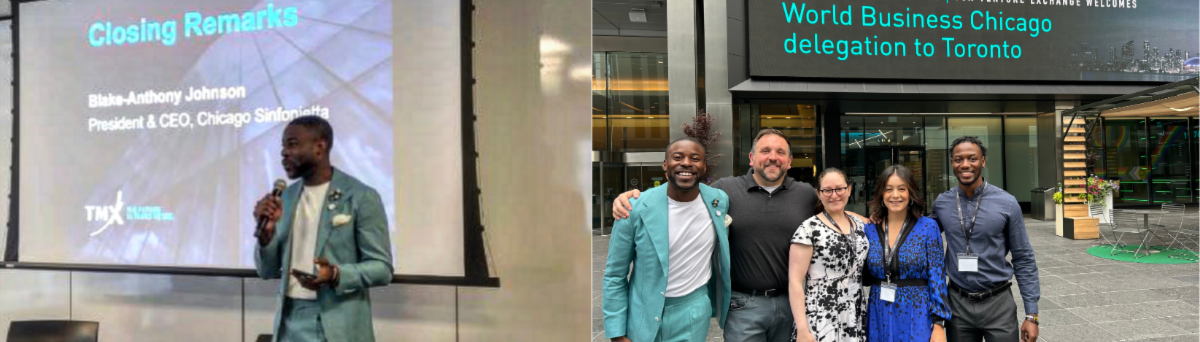 CHICAGO, IL - President and CEO of Chicago Sinfonietta believes in promoting classical music in every possible way. Today, as a member of the World Business Chicago delegation to Toronto, he had the opportunity to speak and close out the Toronto Stock Exchange and speak at the Collision Conference 2023.