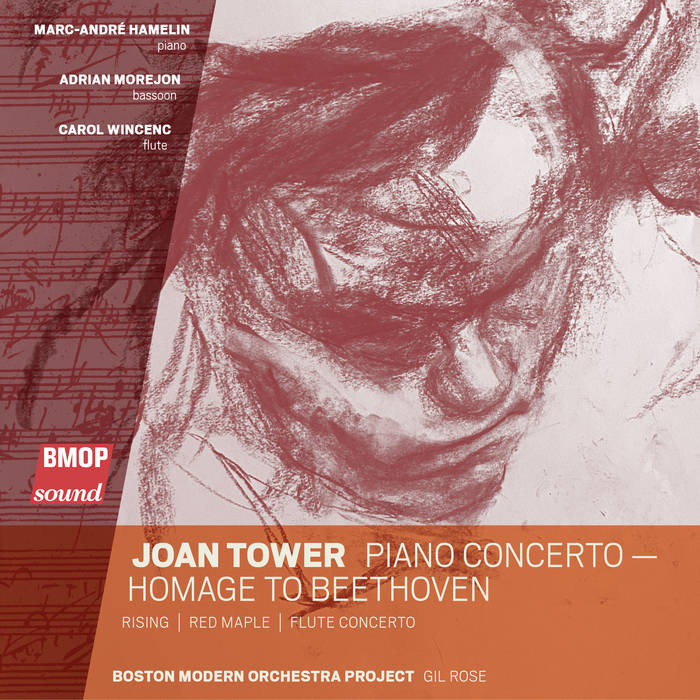 BOSTON, MA (For Release 09.05.23) — Approaching its landmark 100th release, the Grammy Award-winning BMOP/sound today added an astonishing debut album to its catalog: Joan Tower: Piano Concerto – Homage to Beethoven. Joining conductor Gil Rose and his intrepid ensemble the Boston Modern Orchestra Project (BMOP) are three virtuosos: pianist Marc-André Hamelin in Piano Concerto (Homage to Beethoven) (1986), bassoonist Adrian Morejon in Red Maple (2013) (co-commissioned by BMOP), and flutist Carol Wincenc in Rising (2010) and Flute Concerto (1989).