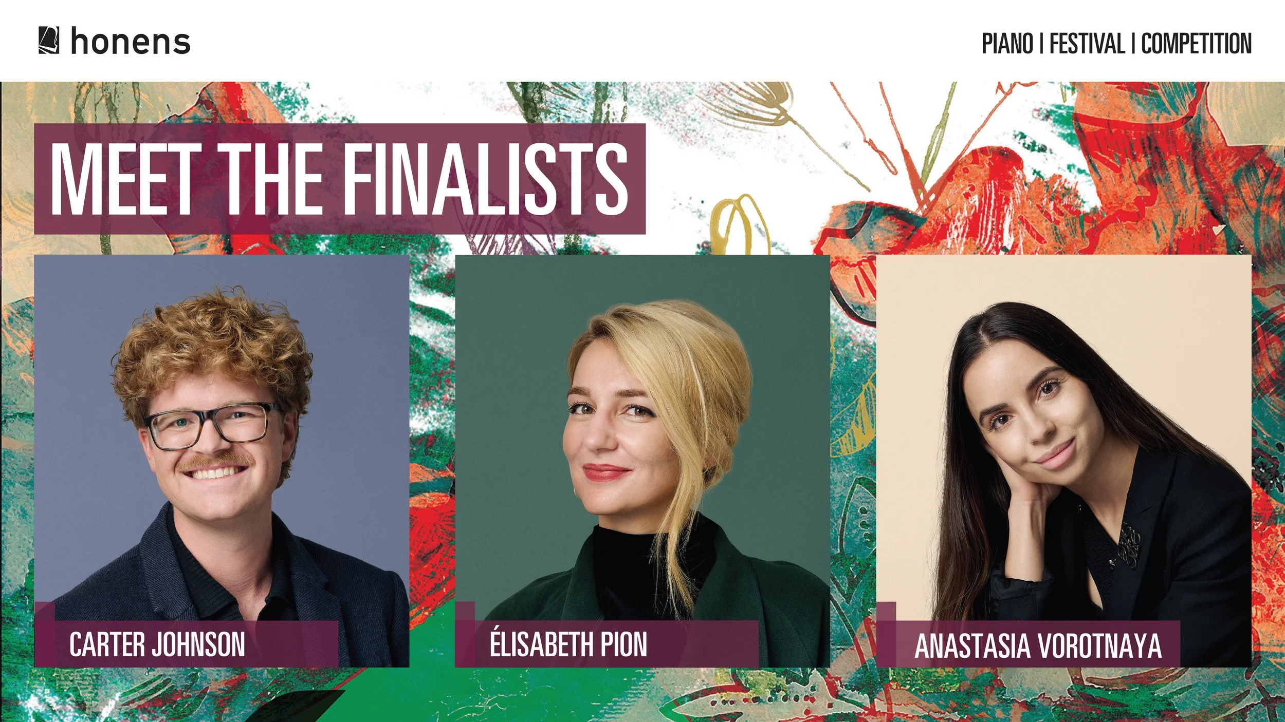 “Honens is thrilled to welcome three extraordinary pianists to the Final Rounds,” says Honens Artistic Director Jon Kimura Parker. “The artistry of each Semifinalist was at the highest level this year. It was especially challenging for the jurors to narrow the group down to three, but the musical insight, performance, and overall brilliance that Carter, Élisabeth, and Anastasia exhibited had a profound impact.”