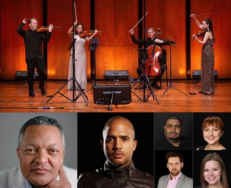 Photo credits: Apollo Chamber Players by Lynn Lane, Kenneth Morris, Jr. by Celeste Sloman, Daniel Bernard Roumain courtesy of the composer; Natalie Broussard, Wayne Ashley, Keaton Brown, and Penelope Campbell courtesy of Houston Chamber Choir.