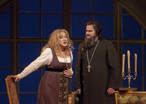 Back at the Met, there were a few high points among (many) lows. The revival of Mussorgsky’s densely historical Khovanshchina showcased bravura performances of a galaxy of stars of the Met’s Russian wing: Olga Borodina, Misha Didyk, Anatoli Kotscherga, George Gagnidze, and Ildar Abdrazakov. Conductor Kirill Petrenko’s controversial decision to use an alternate quiet finale for the climactic mass suicide of the Old Believers worked brilliantly, ending the fourhour saga like an eerie dream.