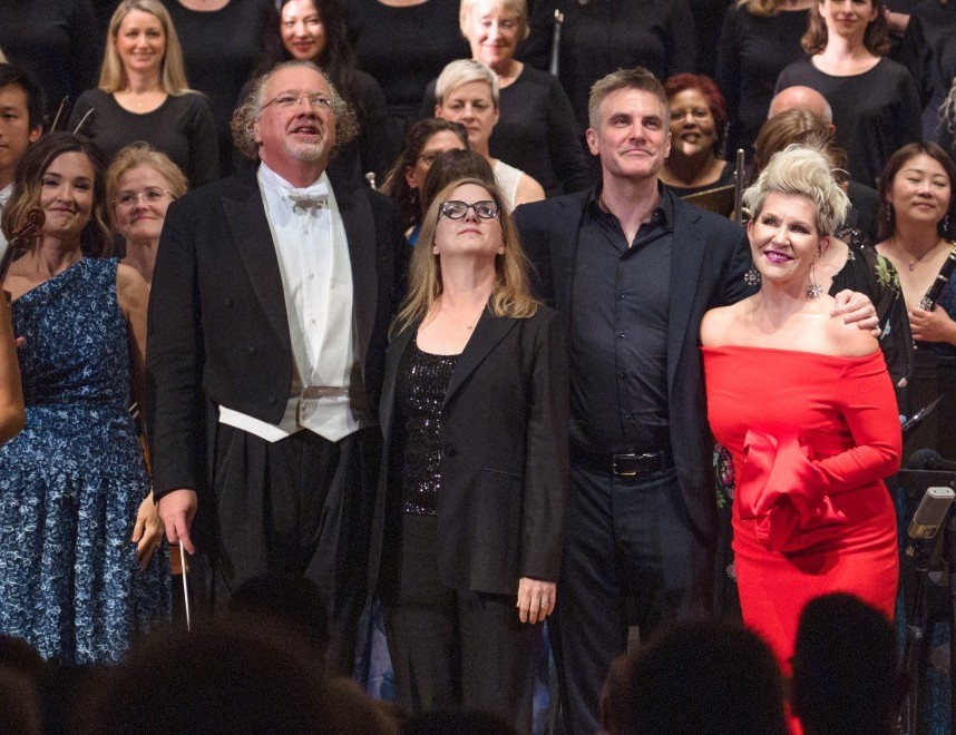 Music Director Stéphane Denève conducts Ein Heldenlaben; Stéphane Denève, Chorus Director Erin Freeman, composer Kevin Puts, Joyce DiDonato; James Lee III, Stéphane Denève; guests at the new entrance to Powell Hall, aka the Jack C. Taylor Music Center