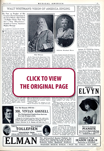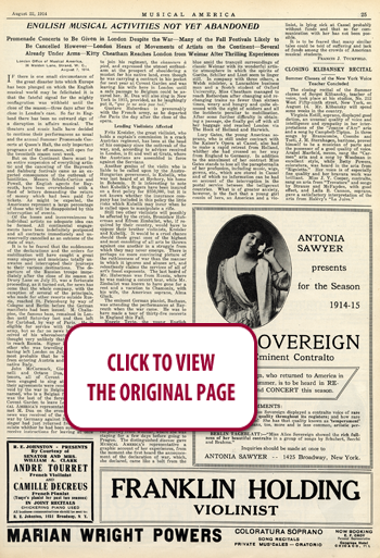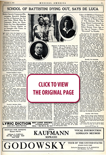 CONTRARY to the custom of opera singers, Enrico Caruso steadily refused to appear in concert until May 1917, when he was persuaded to make his first tour by F. C. Coppicus, head of the Metropolitan Musical Bureau, who as general secretary of the Metropolitan Opera Company, was an intimate friend of the tenor, and personally managed his concert appearances in this country.