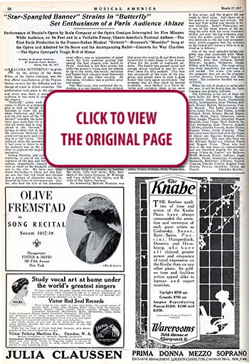 Annual Production of an American Opera by America’s Premier Lyric Theater—A One-Act Description of a Lonely and Temperamental Prima Donna Whose Friends Insist upon Spending New Year’s Day with Their Mothers—Strong Cast Has Frances AIda at Its Head—Conductor Polacco’s Good Work—Sixteen Curtain Calls for Composer and Principals