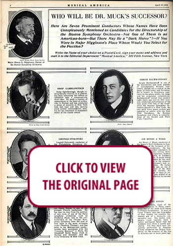Composer Himself Conducts His Work and He at Least Is Pleased—“A Wild Cacophony Strangely Reminiscent of a Nightmare”—“Parsifal” Preparations under Neil Forsyth’s Directions—Ashton Jonson Lectures Contribute to “Parsifal Craze”—Mengelberg Conducts Philharmonic Concert