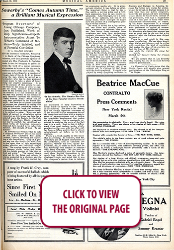 “Certainly Syncopated Music Can Embody a Serious Emotion,” Declares America’s Prince of Ragtime—Importance of Properly Devised Text in Writing of the Popular Song—His Ideal of Comic Opera—May Write an American “Beggar’s Opera”—Syncopation a Complex Medium—Says Future Master Must Have Thorough Technique