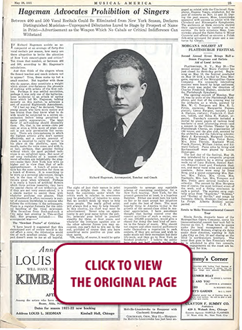 Between 400 and 500 Vocal Recitals Could Be Eliminated from New York Season, Declares Distinguished Musician—Unprepared Debutantes Lured to Stage by Prospect of Name in Print—Advertisement as the Weapon Which No Cabals or Critical Indifference Can Withstand